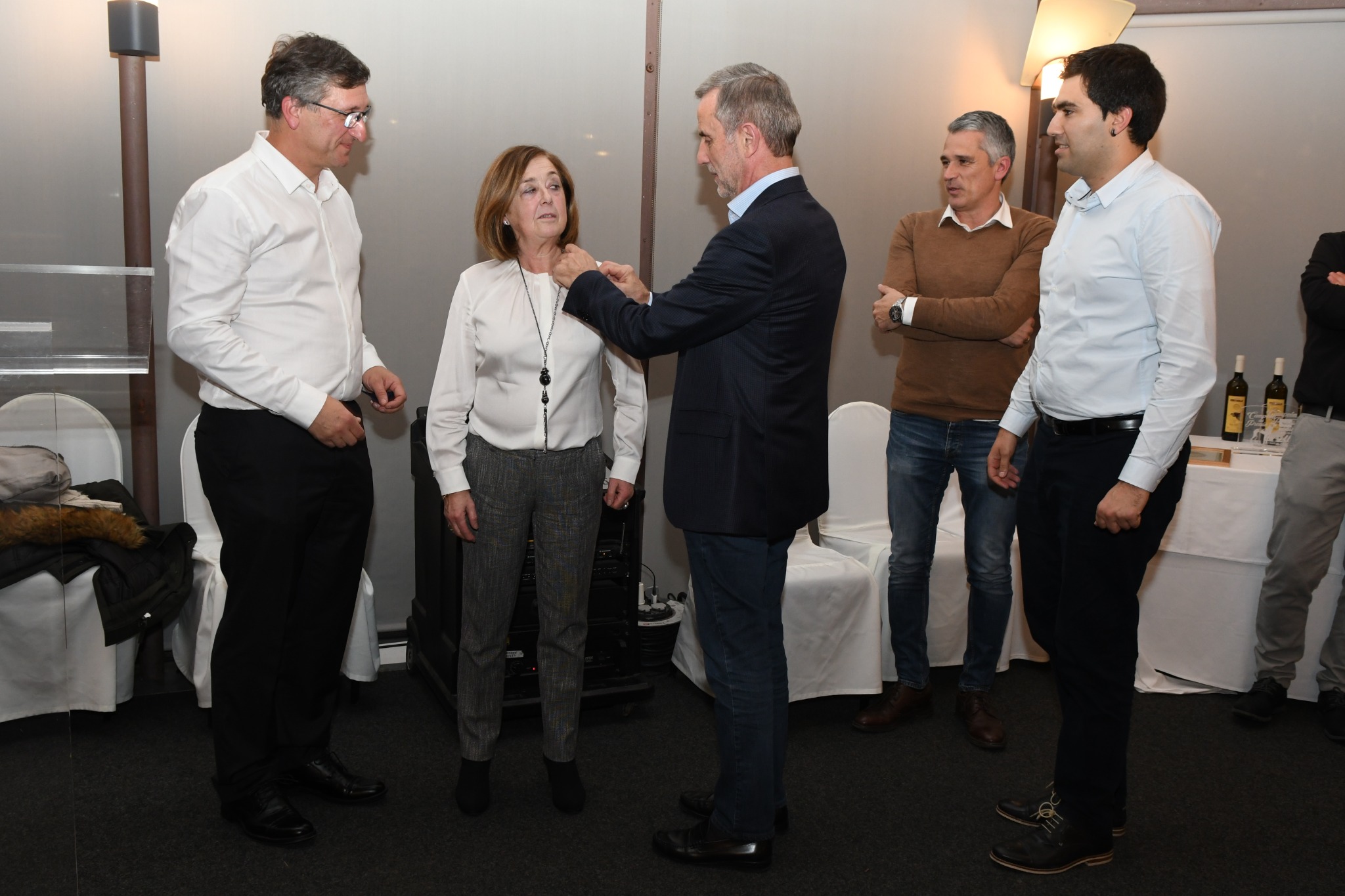 Para finalizar se le entrego la Medalla de Oro de la Federación Bizkaina de Caza a Begoña Besga Larruscain por su trabajo en esta federacion. Toda una vida dedicada a los cazadores desde los inicios federativos. Le hicieron entrega de la distinción los cuatro últimos presidentes federativos. Alex Atxa, Jon Andoni Bengoetxea, Iker Hidalgo y Javier Barona.